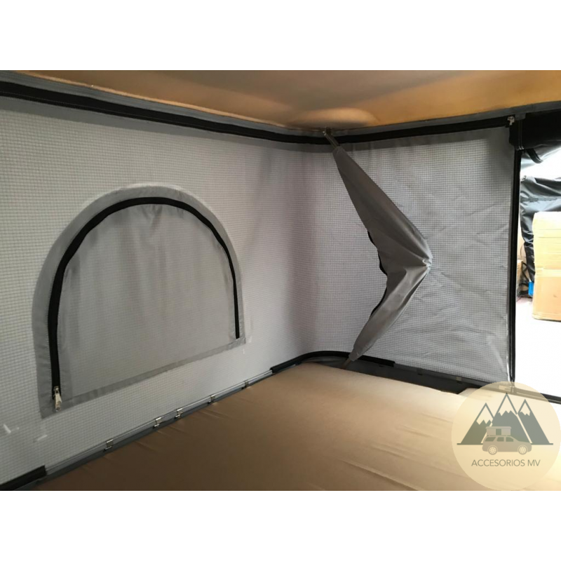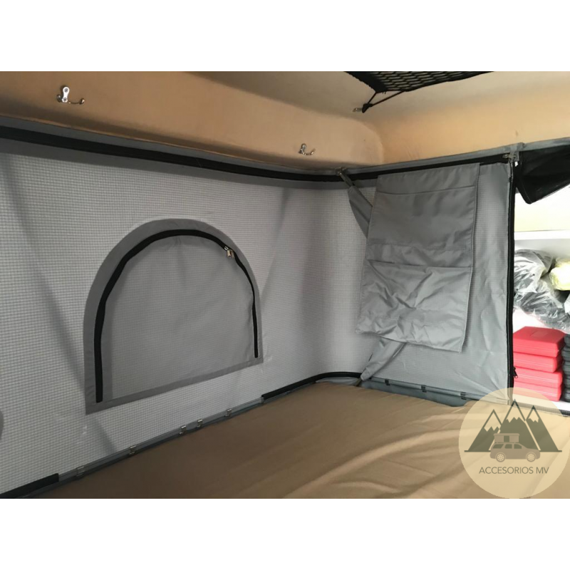 La tienda de techo Kalahari Explorer se abre totalmente en vertical, dejando un habitáculo de gran confort.